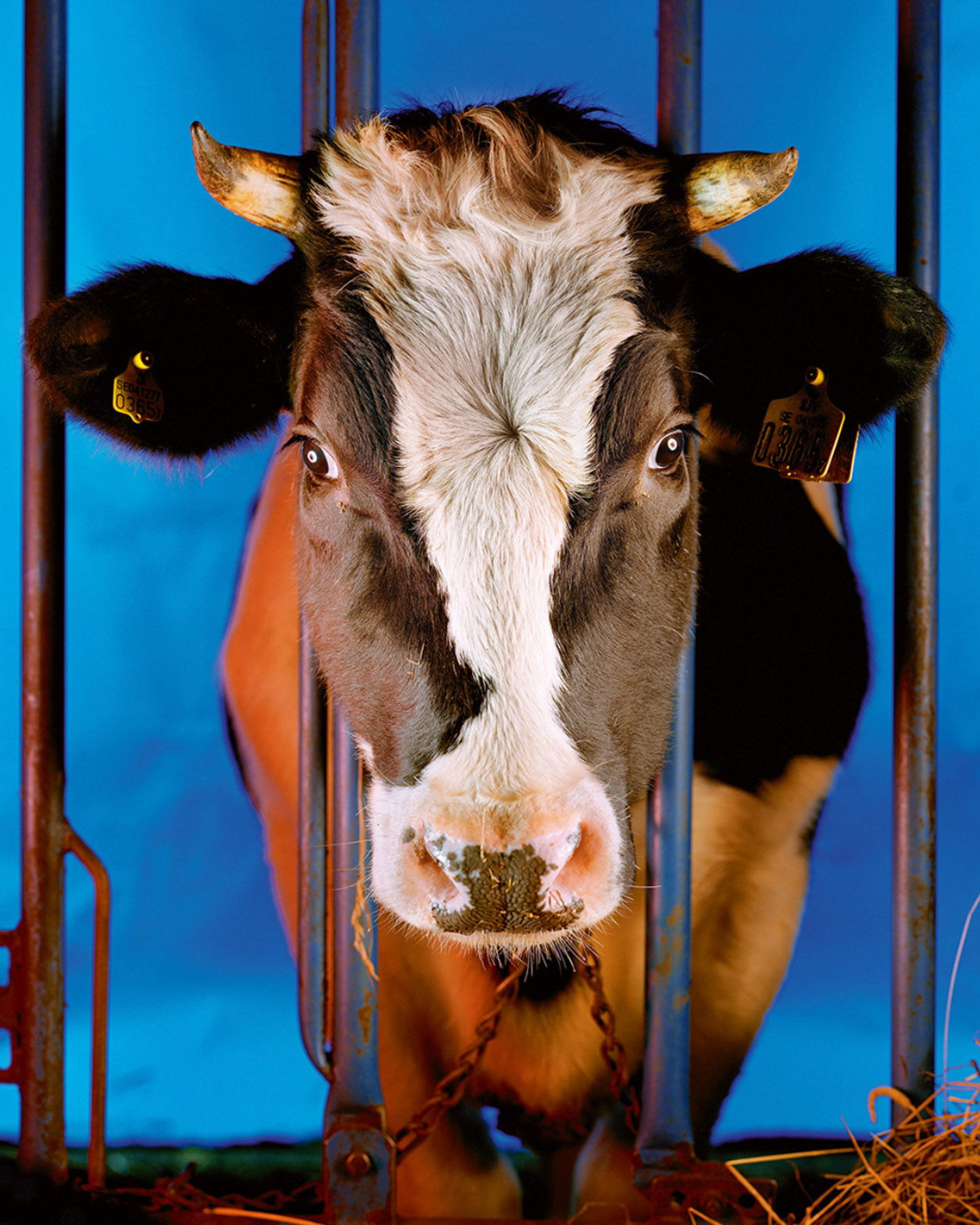 Fotoboken The Chosen Ones av Hendrik Zeitler består av 19 porträtt av kor. Bilderna är alla fotograferade med blixt och samma utsnitt, närbild rakt framifrån. Majoriteten är i färg och några enstaka i svartvitt. När vi bläddrar igenom boken möts vi av kor som försiktigt sticker fram sina ansikten genom gallret i en ladugård. De är alla porträtterade var för sig, intimt och nära inpå. Det finns ett lugn över bilderna och samtidigt en desperation. Det jag först fångas av är deras ögon som vädjar till mig. De försöker säga mig något. Deras blickar vittnar om våld och jag ser deras sorg och rädsla. Lidandet är uppenbart. Vissa av dem är fastkedjade runt halsen och alla har gula märkningar i öronen med siffror på. Siffrorna är till för att de ska kunna identifieras, för de har inga namn…