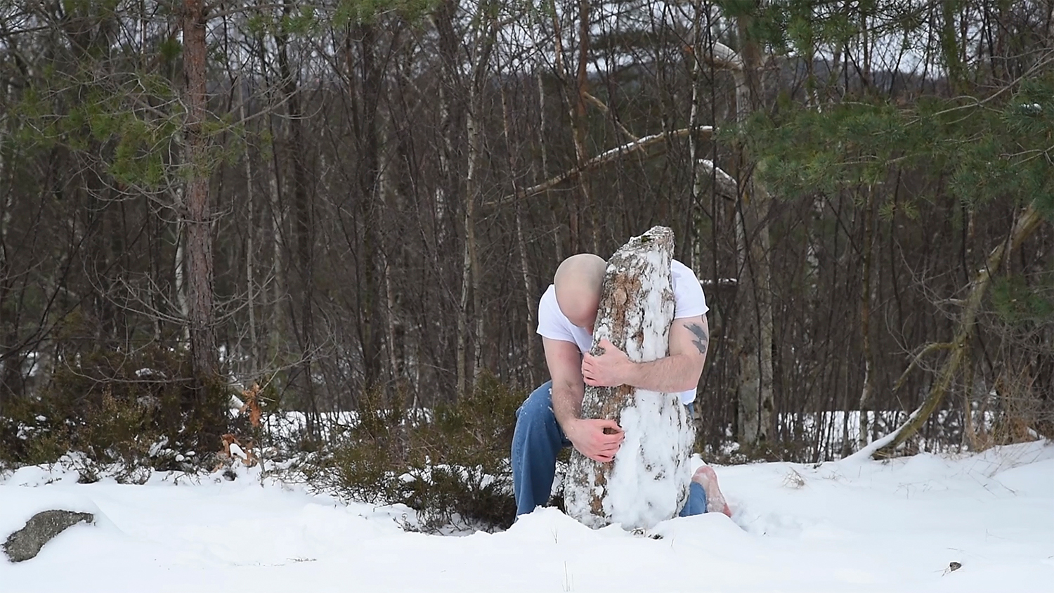 A man approaches a stone. The stone does not belong to him. It would be easier to leave it where it is, but he does not understand that. He believes he needs to carry it, to take it with him. To keep it close. It only causes him pain – does he find comfort in that? Has life without the stone become unbearable to him?